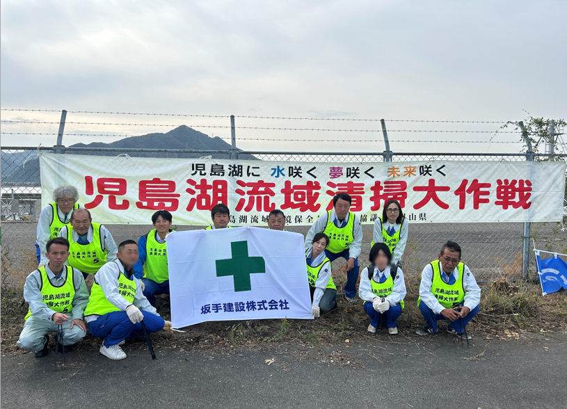 令和7年度11月2日に岡山県により主催された「児島湖流域清掃大作戦」に坂手建設の有志社員が参加いたしました。